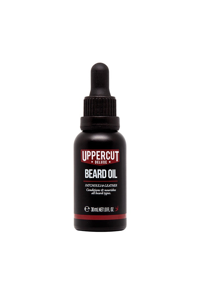 Uppercut Deluxe Beard Oil is lightweight, non-greasy with a Patchouli and Leather fragrance.