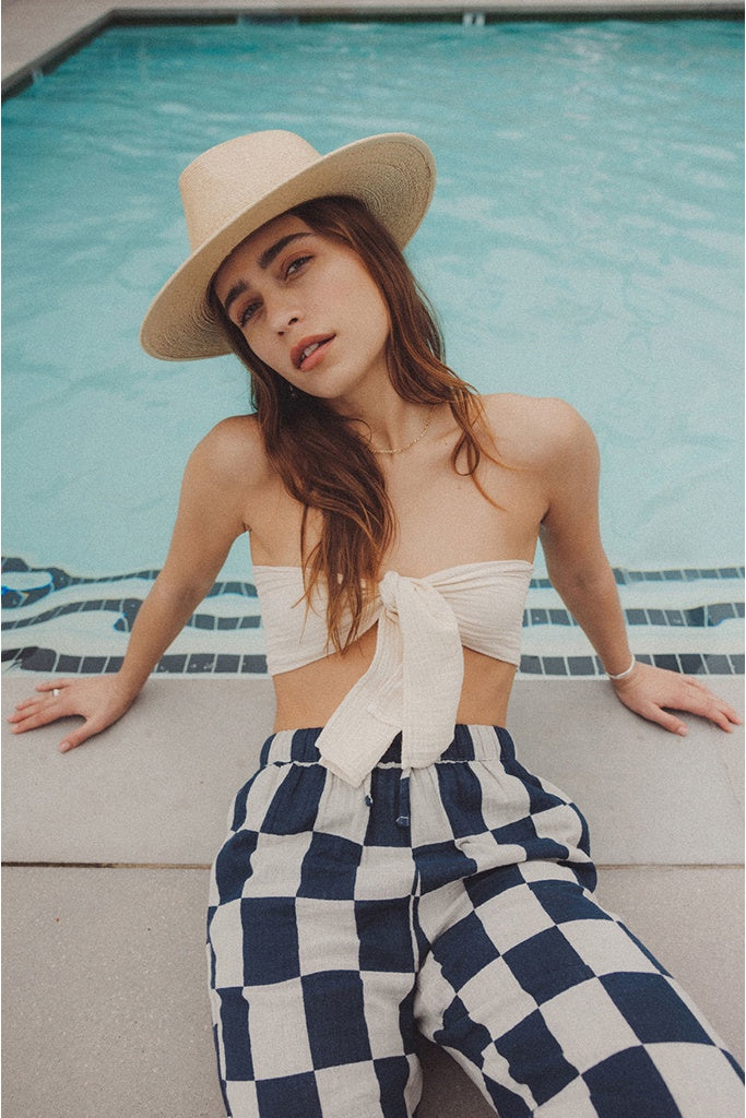 Taking notes from traditional fedoras, the Marcos has a polished silhouette with a wide, flat brim and a strong front pinch. Woven Tripilla straw provides medium structure and 50+ UPF. Customize your fit with an adjustable Velcro strap underneath the inner sweatband.