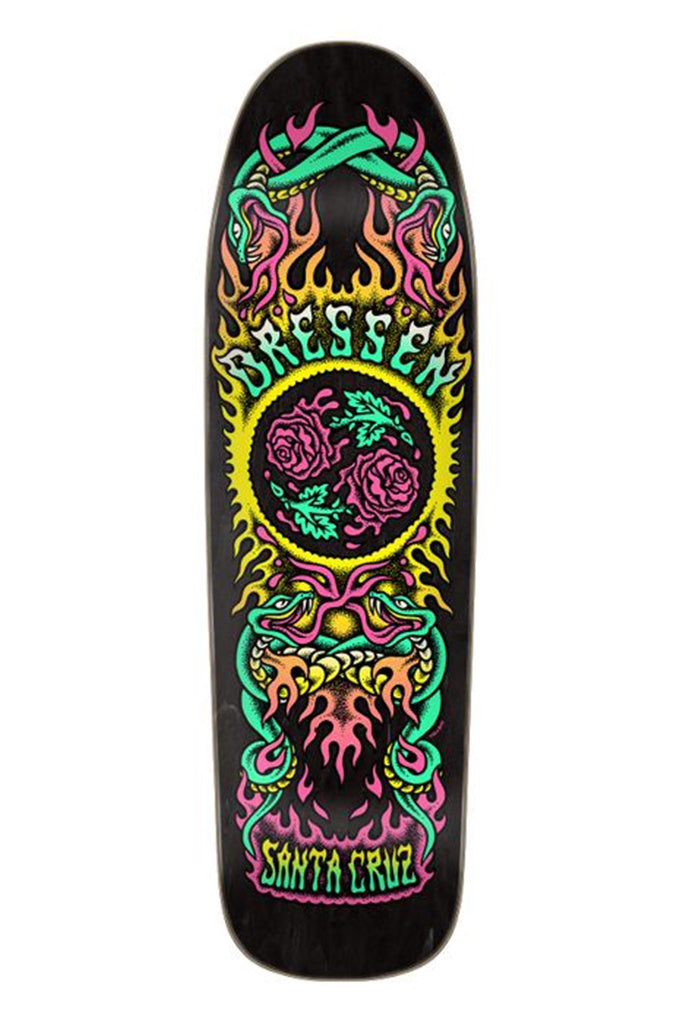 Santa Cruz Skateboards Eric Dressen Rose Crew Two Pro shaped deck with art by Tallboy @tallboy666 based on original artwork by Phillips Studios, featuring spot gloss graphic on Eric's new custom shape with 7 ply North American Maple pressed individually using epoxy making a strong, responsive deck with long lasting pop and consistent concave and kick.