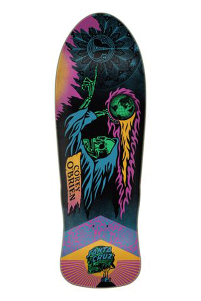 Santa Cruz Skateboards Corey O'Brien Reaper Reissue deck with re-envisioned graphics by Shepard Fairey @obeygiant based on the original artwork by Jim Phillips with spot matte graphic and 50th Anniversary decktop laser etched logo.