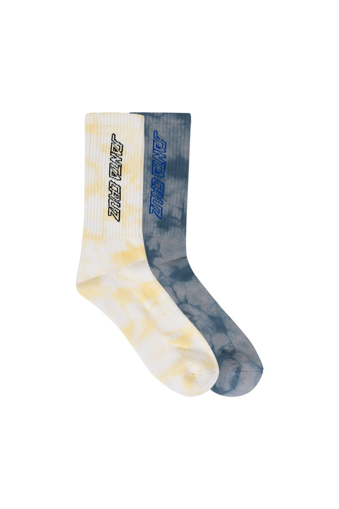 • Santa Cruz Solid Strip Hollow Crew Sock Lte Yellow Tdye-Slate Tdye