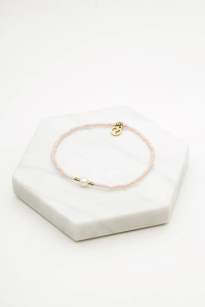 The Emma Bracelet – Dusky Rose is a dainty and elegant piece, featuring soft dusky rose beads beautifully centered around a stunning freshwater pearl. Delicate yet sophisticated, this bracelet is perfect for everyday wear or layering with other pieces for a curated look.