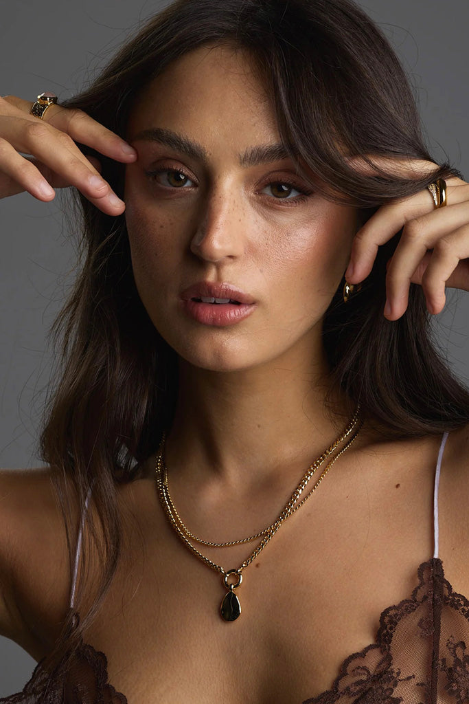 A stunning piece that effortlessly combines elegance with modern flair. The Willow necklace combines the classic beauty of a simple flat chain linking to a beautiful molten like pendant. Effortlessly blending sophistication and modern charm, it's the ideal addition to your everyday necklace collection, effortlessly elevating your style with its understated yet striking presence.